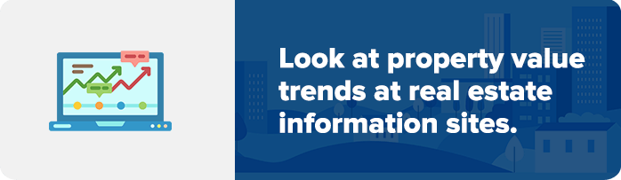 If you're planning to buy, take the time to research property value trends and recent sales in the neighborhood you’re considering. By taking property value trends into consideration, you’ll have a better idea about whether home prices in the neighborhood are going up, remaining consistent, or going downwards. Likewise, check how many houses on your potential street are currently for sale or rent. Too many houses for sale may indicate a possible drop in property values.
